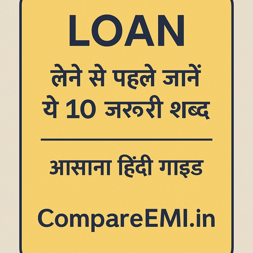 चिंता मत कीजिए! CompareEMI.in आपके लिए लाया है ये आसान और सीधी भाषा में गाइड, जिसमें हम बताएंगे 10 सबसे ज़रूरी लोन से जुड़े शब्दों का मतलब, ताकि आप बिना किसी कन्फ्यूजन के सही लोन चुन सकें।