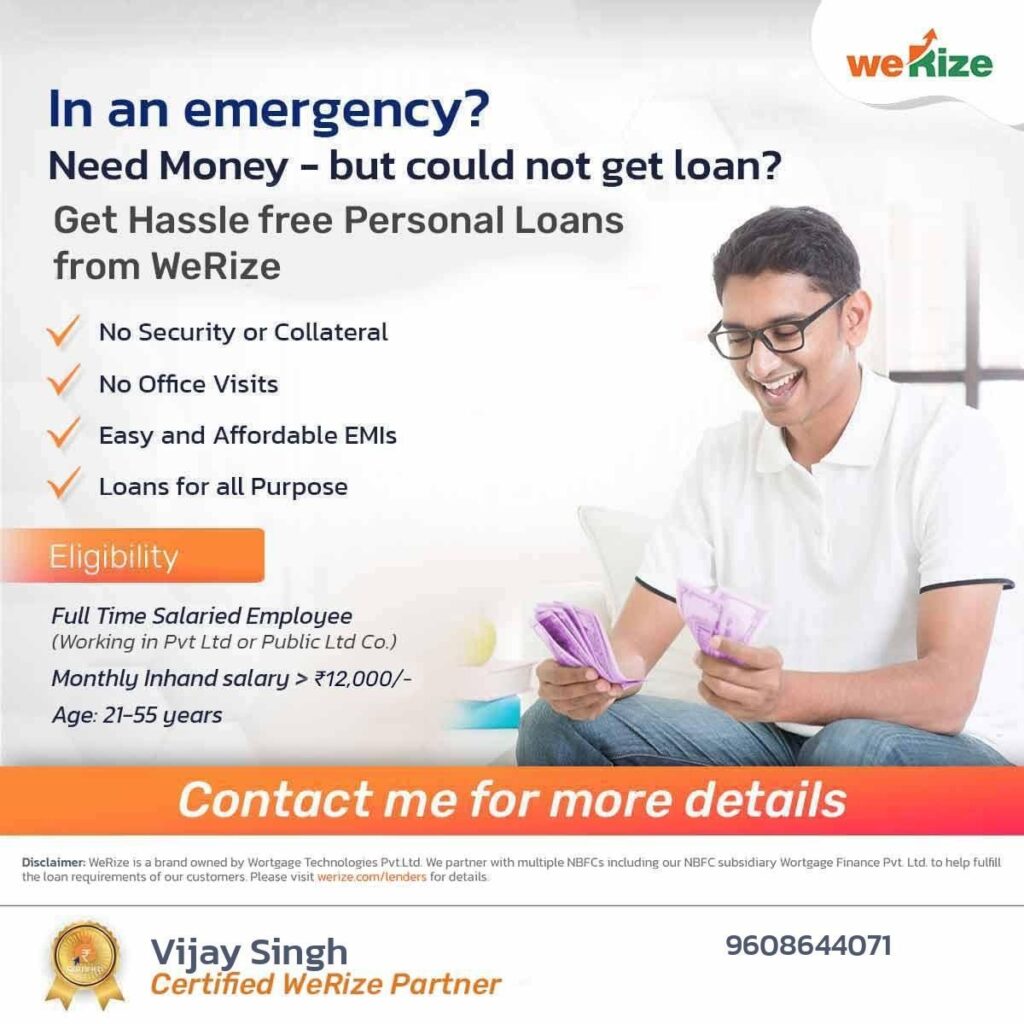 आपको अचानक पैसों की जरूरत है और लोन नहीं मिल पा रहा? चिंता की कोई बात नहीं! WeRize Personal Loan आपके लिए सबसे आसान और भरोसेमंद विकल्प है। बिना किसी सिक्योरिटी या गारंटी के, घर बैठे ही पाएं पर्सनल लोन।